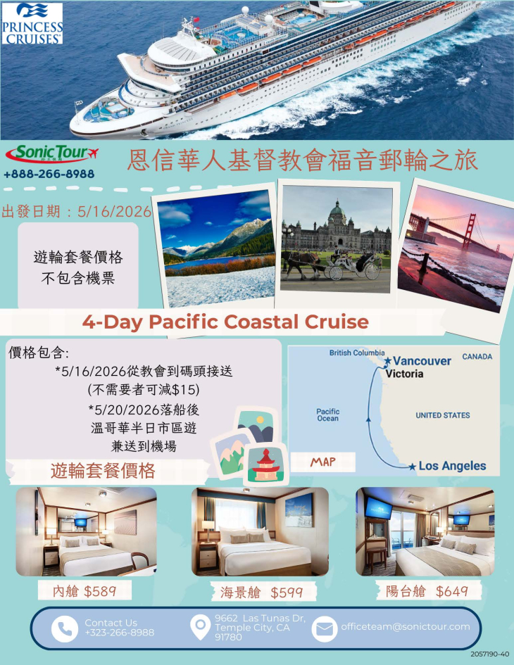 Contact your travel agent for more information and further assistance with reservations on any tour. Your travel agent can also assist you with obtaining visas, travel insurance and can provide general destination information. You may also call SONIC TRAVEL & TOUR at 323-266-8988 在美國。