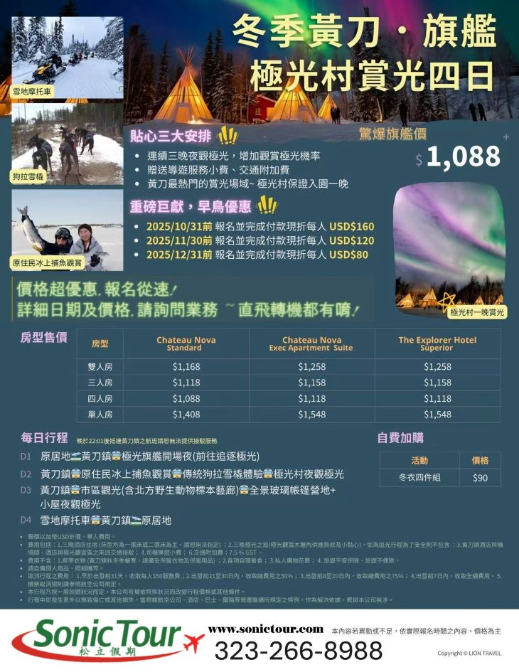 ✘ 原居地往返黃刀鎮機票(購票請洽本公司服務人員)