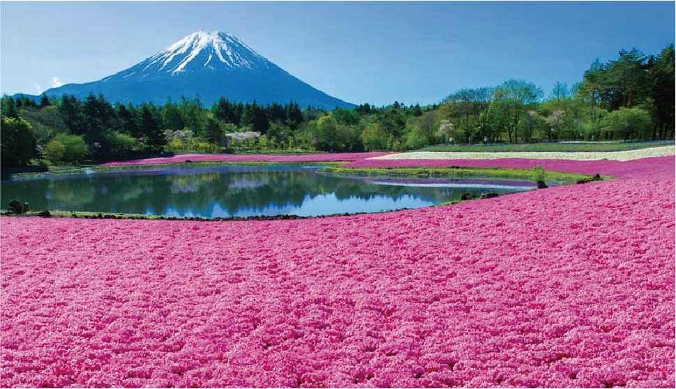 富士芝櫻祭:(4月中-5月下旬)約50萬株芝櫻在廣闊的土地上爭相綻放,與壯麗的富士山相互輝