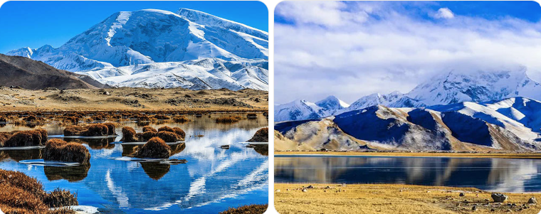 慕士塔格峰、公格爾峰倒映湖面,高原秘境純淨如天堂。