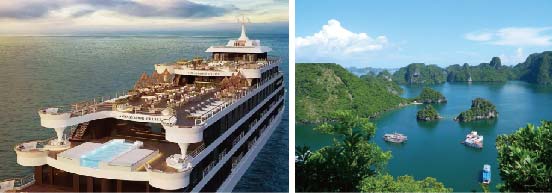 體驗的旅客打造。郵輪航行於世界自然遺產-下龍灣,帶領旅客沉浸於壯麗的石灰岩景觀之中。