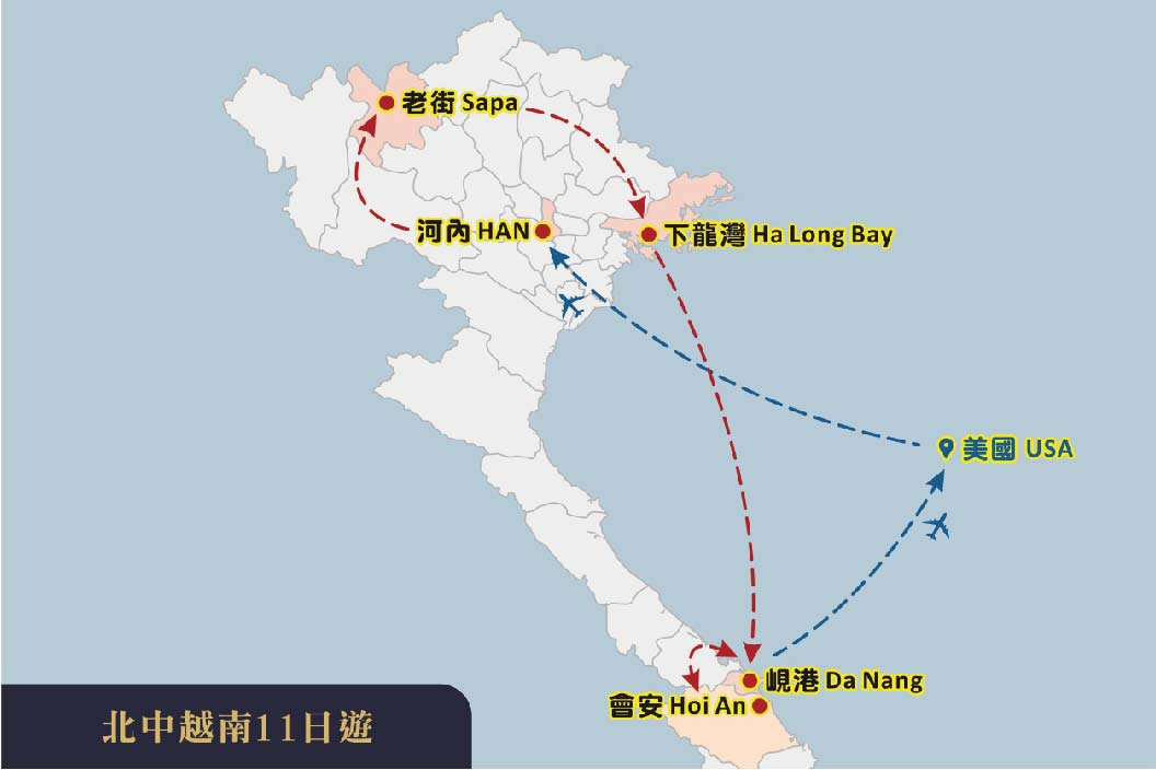 DAY 1 搭乘國際航班飛往越南-河內(HAN)