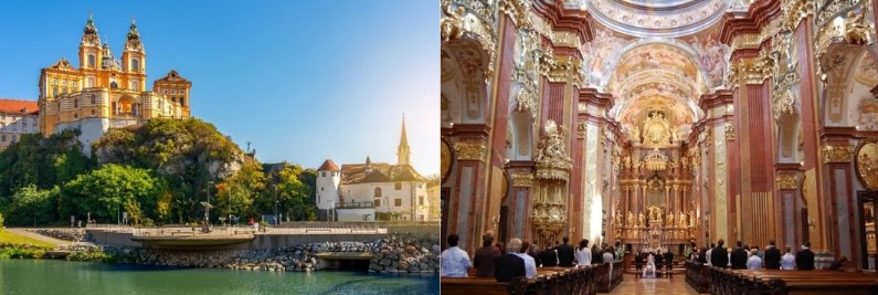 登岸參觀金碧輝煌的梅爾克修道院,這座巴洛克式建築依山而建,是奧地利最著名的宗教建築之一。